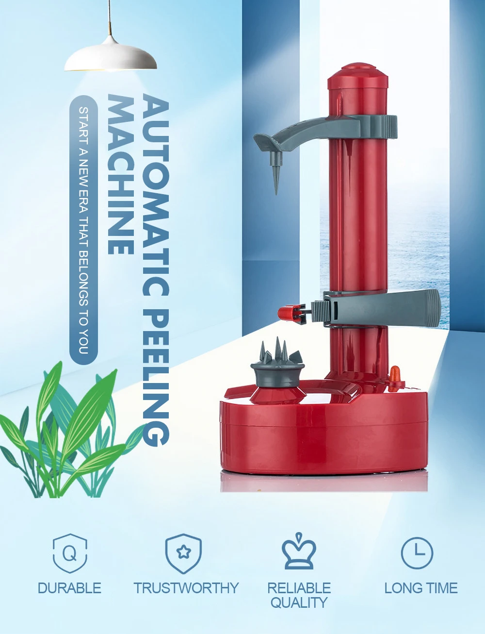 Design de segurança: Design de botão humanizado, basta pressionar suavemente, começar automaticamente a descascar.O pino fixo móvel pode se adaptar a diferentes alturas de vegetais e frutas.O braço mecânico pode ajustar a espessura e equilibrar automaticamente durante o descascamento para manter a espessura uniforme.